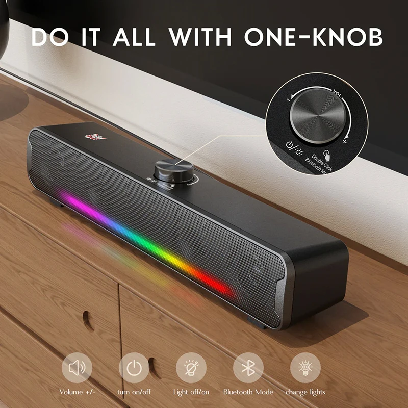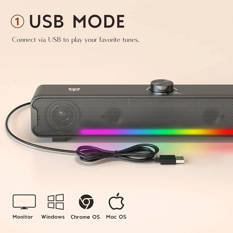 ✅ نورپردازی RGB چند حالته با ۶ افکت مختلف از جمله Rhythm و Breathing، تجربه شنیداری را با جلوههای نوری جذاب همراه میکند. این نورپردازی پویا، هماهنگ با فضای بازی یا موسیقی، محیطی هیجانانگیز خلق میکند و لذت استفاده از اسپیکر را دوچندان میسازد.