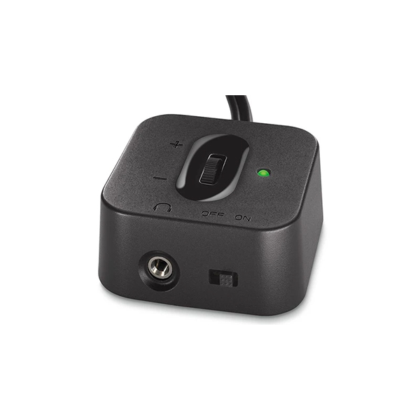 سابووفر با طراحی Down-Firing بیس عمیقتری ارائه میدهد و به خوبی صدای فرکانس پایین را پوشش میدهد. کنترل صدا از طریق یک کنترلر سیمی انجام میشود که علاوه بر تنظیم حجم صدا، کلید روشن و خاموش دستگاه نیز روی آن تعبیه شده است. همچنین، یک خروجی هدفون نیز روی کنترلر وجود دارد تا در صورت نیاز، صدا را مستقیماً به هدفون منتقل کنید.