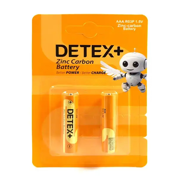باتری نیم قلمی DETEX مدل R03P بسته 2 عددی