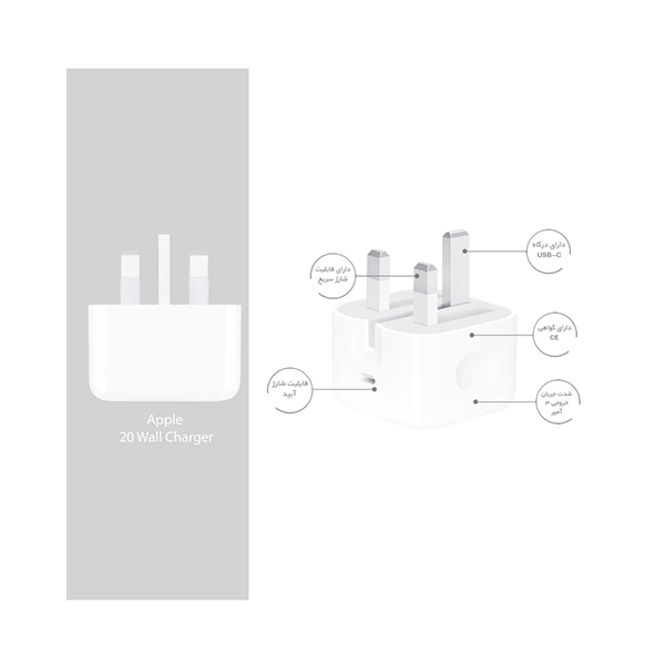 | حداکثر توان خروجی : | 20 وات, دارای گواهی CE مناسب برای محصولات اپل iPad ،iPhone، آیپد پرو، آیپد ایر، ایرپاد و سایر دستگاههای دارای رابط USB-C |