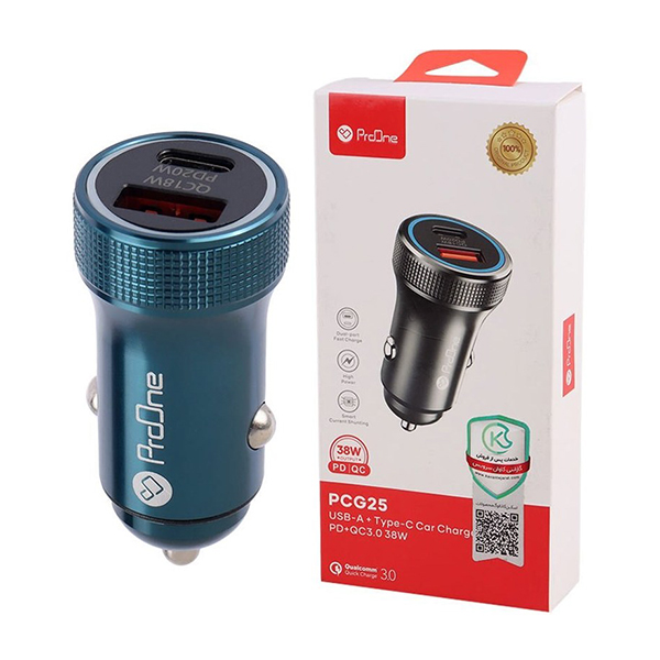شارژر فندکی ProOne مدل PCG25 3A QC3.0 PD 20W آبی با قدرت واقعی، امنیت بینقص و طراحی جذاب، انتخابی هوشمندانه برای شارژ سریع و مطمئن در هر سفر خودرویی است!