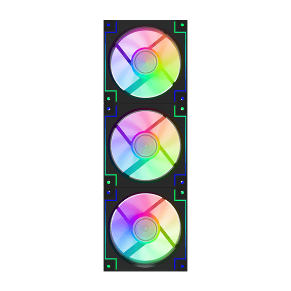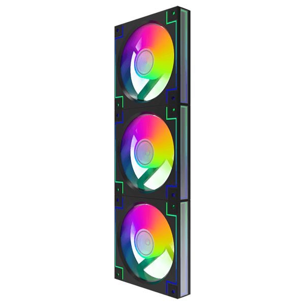 ✅ نورپردازی ARGB داخلی و خارجی فراهم میآورد، دارای ۱۶ عدد LED در هر فن و قابلیت همگامسازی با مادربرد از طریق پورتهای ۵ ولت ARGB یا هاب مخصوص؛ همچنین طراحی ضد لرزش (Shockproof) با پدهای لاستیکی در گوشههای قاب جهت کاهش صدا و لرزش کیس.