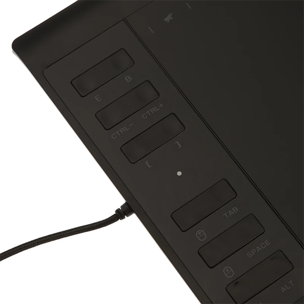 ابعاد سطح فعال این تبلت 10×6 اینچ در نظر گرفته شده که فضای کافی برای طراحیهای دقیق و روان فراهم میآورد. در کنار آن، قلم نوری با کیفیت بالا، با وزن سبک و طراحی ارگونومیک، تجربهای راحت و بدون خستگی برای استفادههای طولانیمدت ارائه میدهد. ارتفاع تشخیص قلم تا 15 میلیمتر و وجود دو کلید فیزیکی روی آن باعث شده تا کنترل بیشتری در اختیار کاربر قرار گیرد. همچنین وجود 12 کلید میانبر فیزیکی و 10 کلید لمسی روی بدنه، سرعت و دقت کار را بهشکل محسوسی افزایش میدهد.