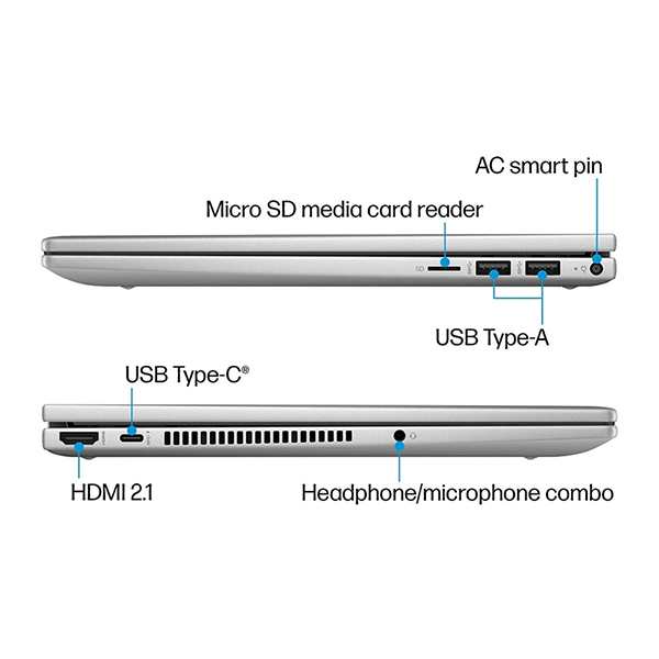 ✅ از لحاظ امکانات ارتباطی، دستگاه به جدیدترین فناوریها مانند Wi-Fi 6E و بلوتوث نسخه 5.3 مجهز است. همچنین پورتهای متنوعی مانند HDMI 2.1، دو پورت USB 3.2 Type A و یک پورت USB Type C با پشتیبانی از PD و DisplayPort در نظر گرفته شده که برای اتصال انواع تجهیزات جانبی کافی و بهروز هستند. وجود حسگر اثر انگشت، وبکم ۵ مگاپیکسلی HP True Vision و دکمه CoPilot برای دسترسی سریع به هوش مصنوعی از دیگر ویژگیهای مدرن این دستگاه محسوب میشوند.
