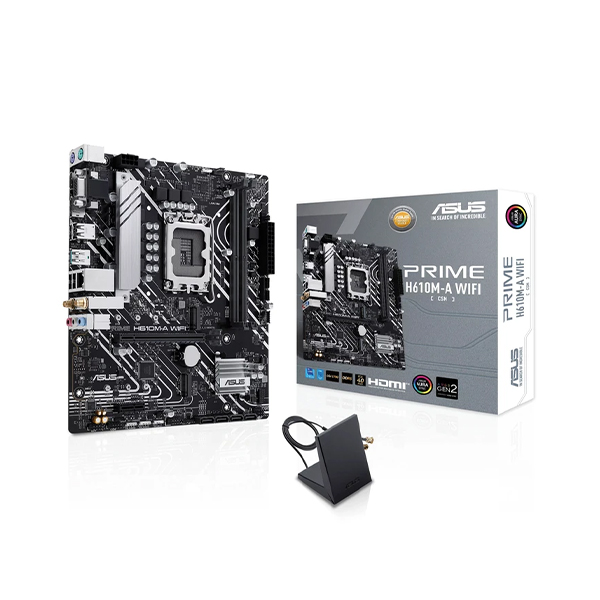 مادربرد ایسوس مدل Prime H610M-A WiFi D4 یک گزینهی مقرونبهصرفه و کاربردی برای کاربرانی است که به دنبال یک برد مدرن و پایدار برای پردازندههای اینتل نسل 12 و 13 هستند. این مادربرد با چیپست H610 و سوکت LGA1700 از پردازندههای Core i3، i5، i7 و i9 پشتیبانی میکند و گزینهای عالی برای سیستمهای خانگی، اداری و گیمینگ سبک محسوب میشود.