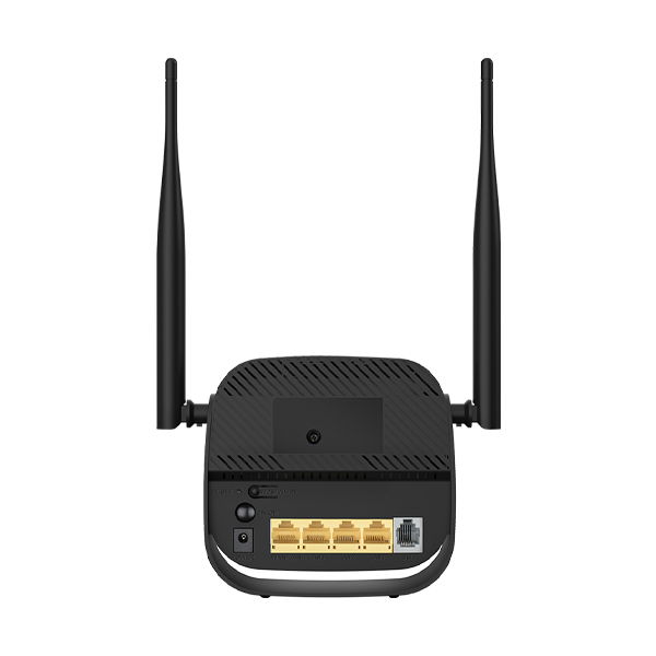 پورتها: مجهز به چهار پورت اترنت RJ-45 برای اتصال دستگاههای کابلی و یک پورت RJ-11 برای اتصال خط تلفن.