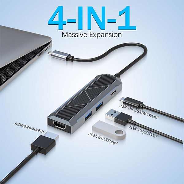 UCA-4 بهخصوص برای کاربرانی طراحی شده که از لپتاپهایی با تعداد محدود پورت رنج میبرند. با این هاب میتوانید تنها با اتصال یک کابل، به دو پورت USB-A پرسرعت، یک پورت HDMI برای انتقال تصویر و یک پورت PD برای شارژ سریع دستگاهها دسترسی پیدا کنید. این ترکیب دقیقاً نیاز روزمره اکثر کاربران را پوشش میدهد؛ از اتصال ماوس و کیبورد گرفته تا مانیتور و شارژر.