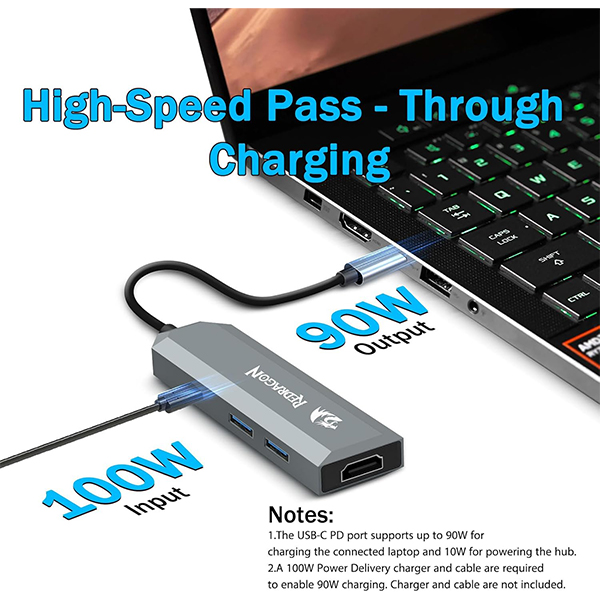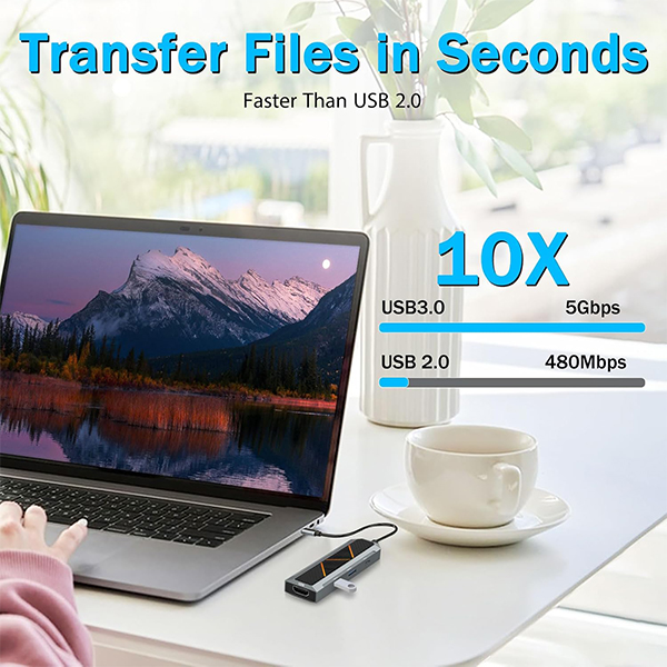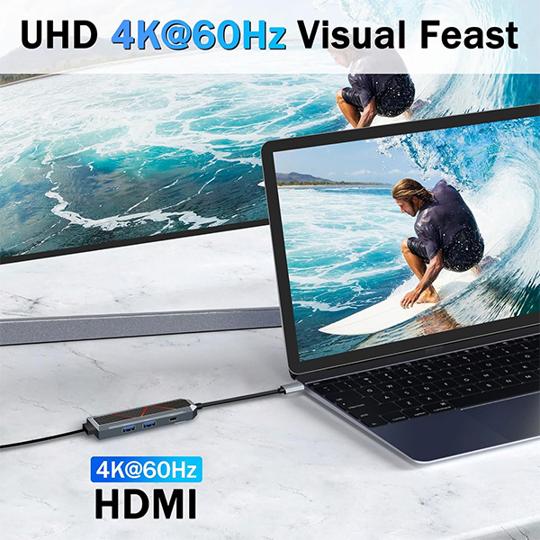 پورت HDMI تعبیهشده در این هاب، از کیفیت بالا پشتیبانی میکند و به شما این امکان را میدهد که لپتاپ خود را به مانیتورهای بزرگتر یا تلویزیونهای 4K متصل کرده و از یک تجربه بصری بهتر بهرهمند شوید. این قابلیت در جلسات کاری، کلاسهای آموزشی آنلاین یا تماشای فیلم بسیار کاربردی است.