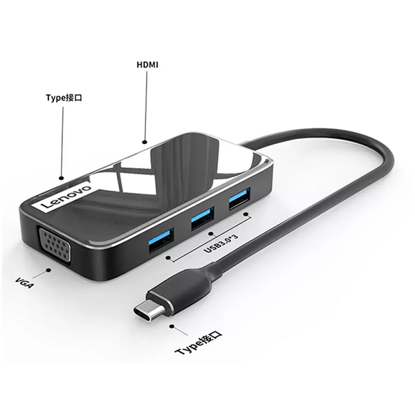 ✅ هاب ۶ پورت تایپسی لنوو مدل Lenovo EV06 Multifunctional Type-C Hub