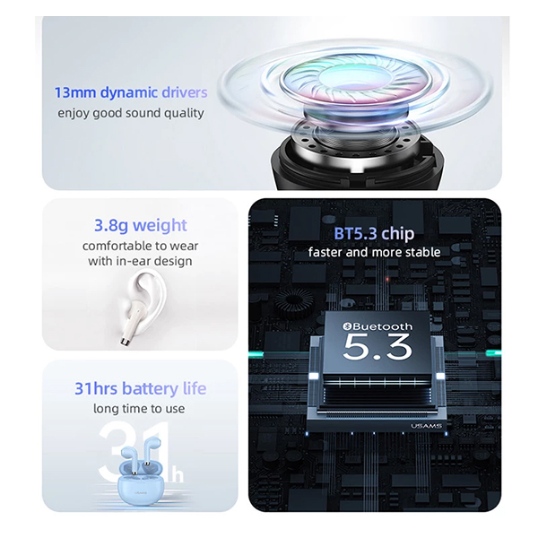 ✔️ هندزفری بیسیم Usams مدل YO17 با طراحی نیمهداخلگوش (Half In-Ear) و وزن بسیار سبک، گزینهای مناسب برای استفاده روزمره، مکالمه، موسیقی و حتی استفاده طولانیمدت بدون خستگی هست. بدنهای جمعوجور و طراحی ارگونومیک باعث میشه بهخوبی در گوش قرار بگیره و بدون لغزش در زمان پیادهروی، کار یا مطالعه همراهت باشه.