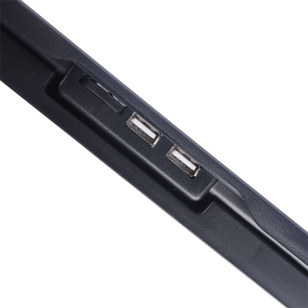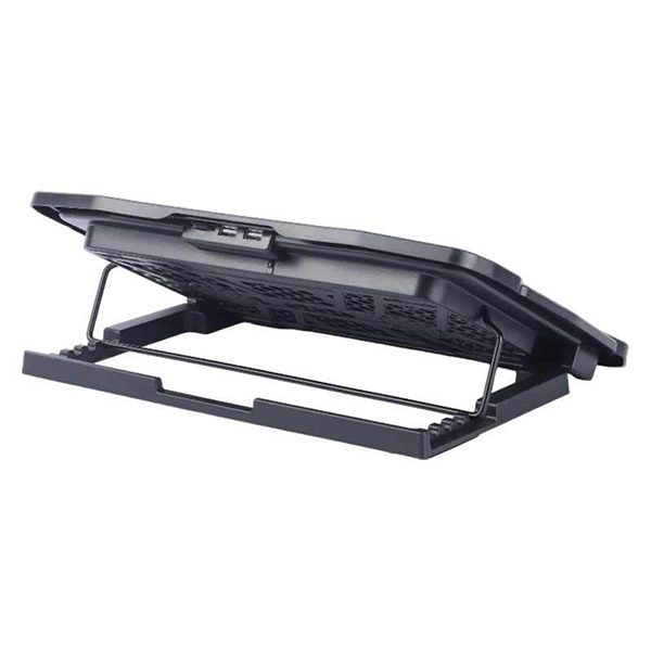 ✅ فنهای این کولپد با سرعت چرخش 2400 دور در دقیقه و نویز بسیار کم (تنها 23 دسیبل) عملکردی بیصدا و مؤثر در کاهش دمای لپتاپ دارند. وجود نورپردازی LED آبی رنگ درون فنها، جلوهای جذاب و حرفهای به میز کار شما میدهد و بهویژه در محیطهای کمنور بسیار چشمگیر است.