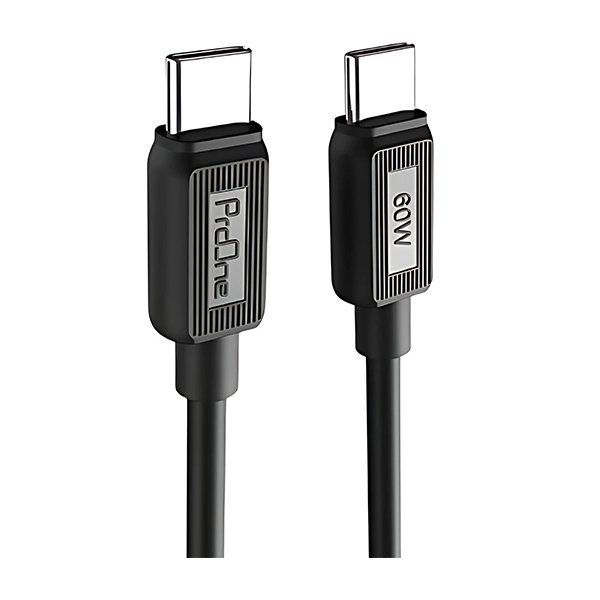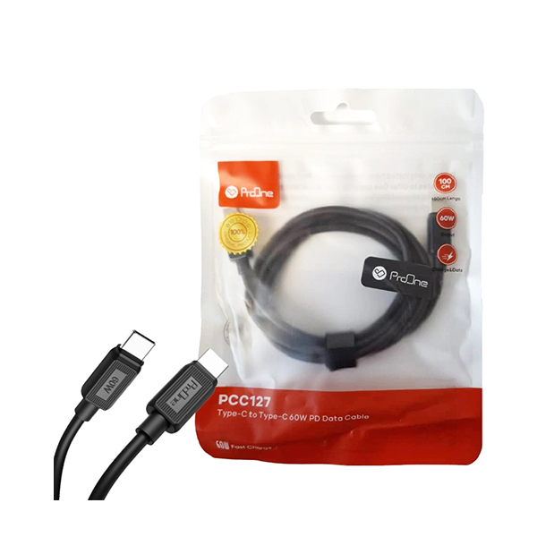✅ کابل شارژ ProOne C to C مدل PCC127 با توان ۶۰ وات و طراحی مقاوم، گزینهای مناسب برای شارژ سریع و انتقال داده در دستگاههای مجهز به درگاه USB-C است.