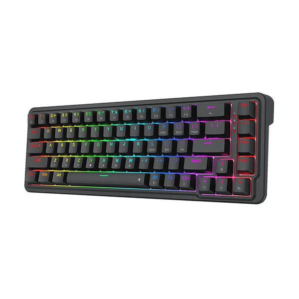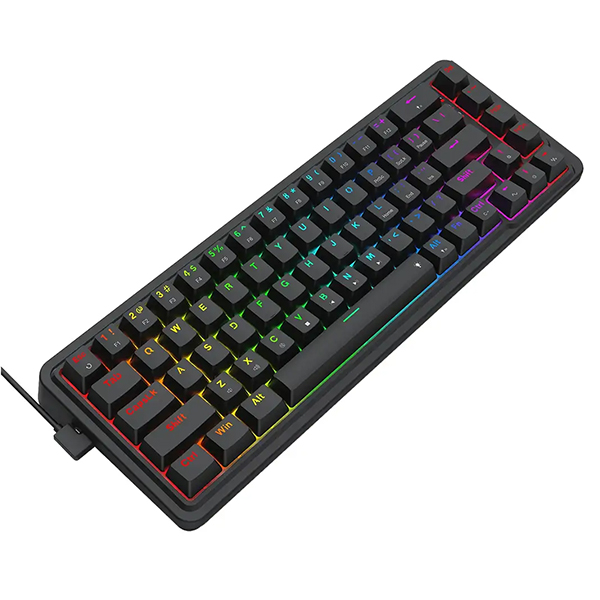 کیبورد K709 RGB با طراحی فوقالعاده جمعوجور و سبک، فضای بسیار کمی را روی میز کار شما اشغال میکند و به راحتی میتوانید آن را حمل کنید. این کیبورد با طراحی 65% و 68 کلید، برای کاربرانی که به دنبال یک کیبورد جمعوجور و قابل حمل هستند، بسیار مناسب است.