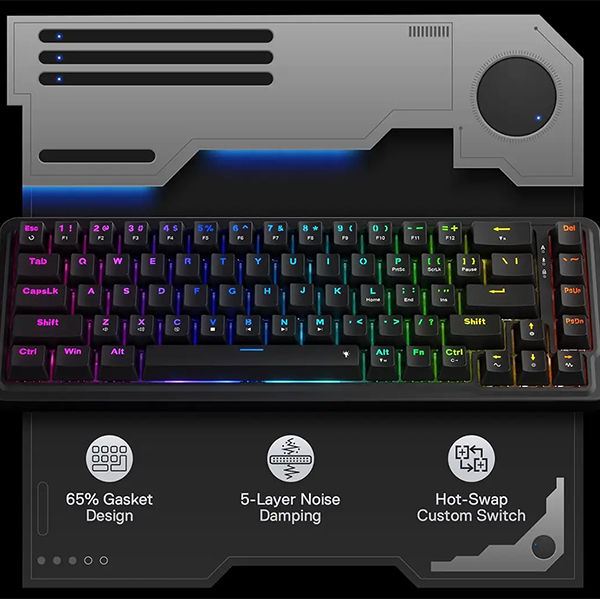 کیبورد K709 RGB دارای ساختار گسکت است که باعث میشود حس تایپ نرمتر و منعطفتر باشد. این ساختار با استفاده از واشرهای سیلیکونی، مقاومت و پایداری کیبورد را بهبود میبخشد و صدای اضافی را کاهش میدهد.