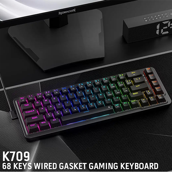 کیبورد مکانیکال گیمینگ ردراگون NOVA K709 RGB با طراحی فوقالعاده جمعوجور، ساختار گسکت، قابلیت Hot-Swap، کاهش نویز، چیدمان 68 کلید با سیم، سوئیچهای مکانیکی Dragon Chant، نورپردازی RGB جذاب، و نرمافزار حرفهای، انتخابی ایدهآل برای گیمرها و کاربران حرفهای است که به دنبال یک کیبورد با عملکرد بالا، انعطافپذیری، و زیبایی هستند.