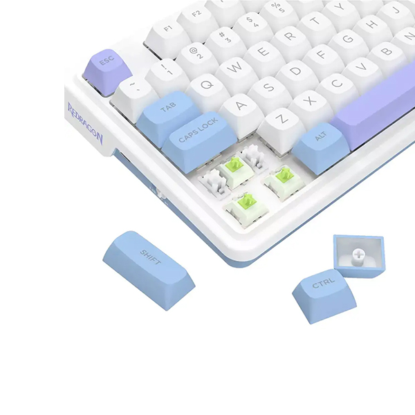 ✔️ فرم فاکتور 75% فشرده (81 کلید) با ترکیب رنگی سفید-آبی-بنفش.