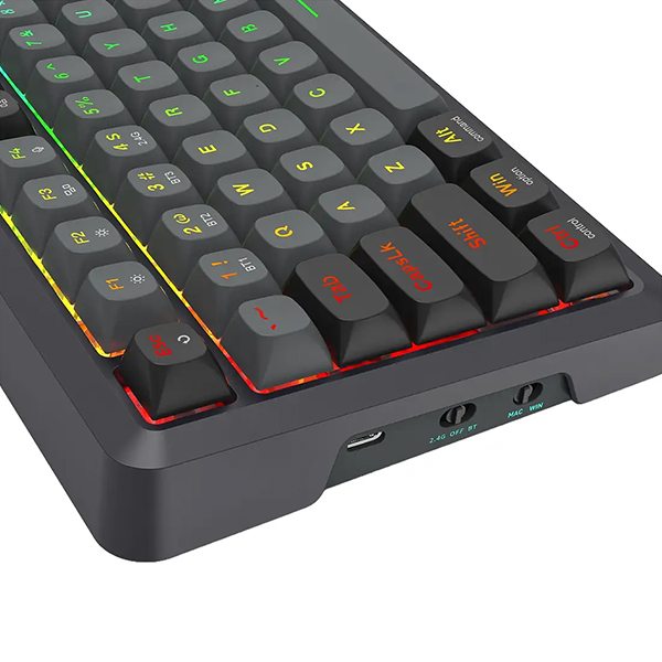 K688 GB PRO با پشتیبانی از بلوتوث 5.0، دانگل بیسیم 2.4GHz و کابل USB-C، انعطاف فوقالعادهای در اتصال به دستگاههای مختلف مانند کامپیوتر، لپتاپ، تبلت، کنسولهای Xbox و PS4/PS5 ارائه میدهد. همچنین، این کیبورد امکان اتصال همزمان به پنج دستگاه را فراهم میکند و با ترکیب کلیدهای FN میتوانید به راحتی بین آنها جابجا شوید.