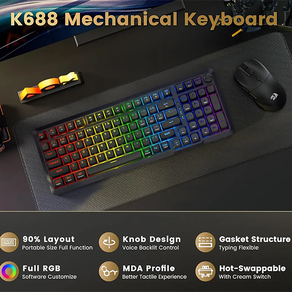 ✅ کیبورد مکانیکال گیمینگ Redragon BRAGI K688 GB PRO – نهایت شخصیسازی و عملکرد در قالبی فشرده