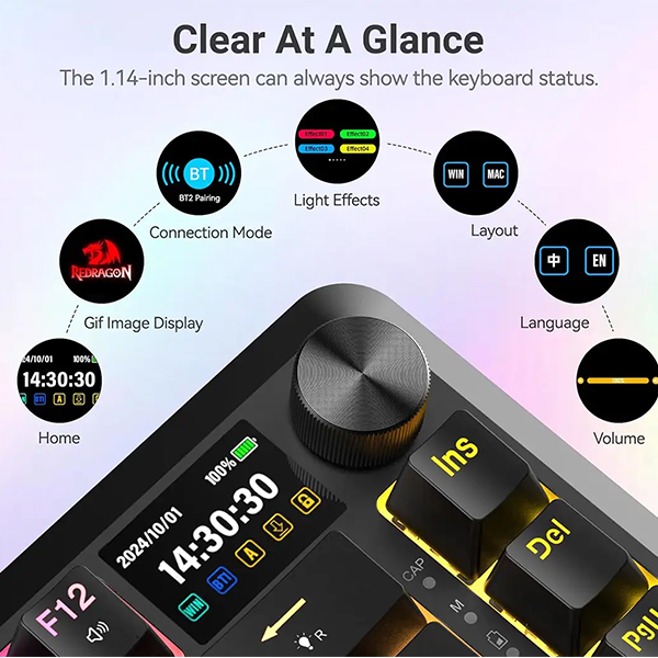 کیبورد بی سیم مکانیکال گیمینگ Redragon مدل K708 PRO Black RGB