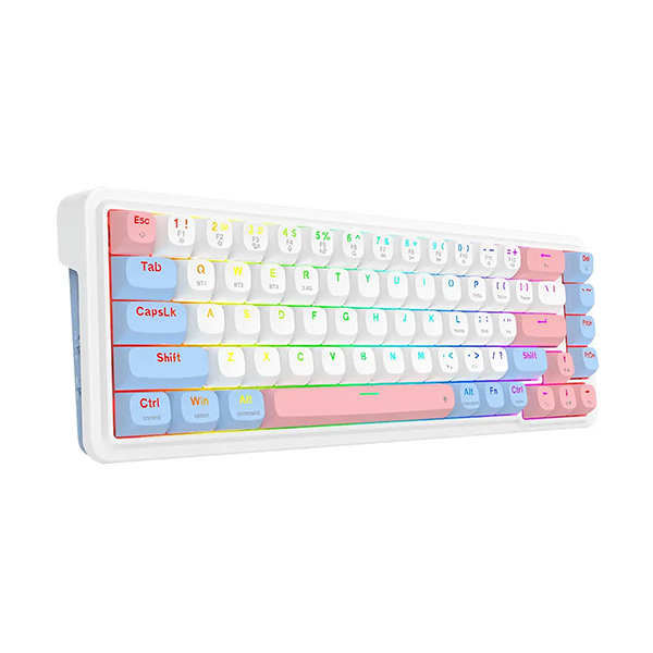 کیبورد K709 PRO WBP RGB با طراحی فوقالعاده جمعوجور و سبک، فضای بسیار کمی را روی میز کار شما اشغال میکند و به راحتی میتوانید آن را حمل کنید. این کیبورد با طراحی 65% و 68 کلید، برای کاربرانی که به دنبال یک کیبورد جمعوجور و قابل حمل هستند، بسیار مناسب است.