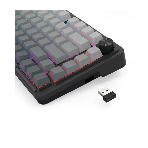 طراحی فشرده و سهحالته این کیبورد به شما امکان میدهد که از سه حالت اتصال مختلف (USB-C با سیم، بلوتوث 3.0/5.0، و بیسیم 2.4 گیگاهرتز) استفاده کنید. این ویژگی انعطافپذیری بالایی را به شما میدهد و امکان جابجایی آسان بین دستگاهها را فراهم میکند.