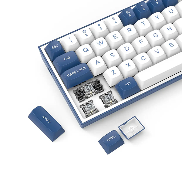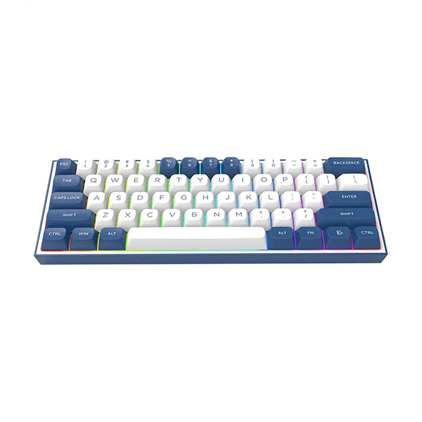 یکی از نقاط قوت مهم این مدل، طراحی 60 درصدی آن است که با حذف کلیدهای نامپد و F، فضای بسیار زیادی را برای حرکت آزاد ماوس فراهم میکند. این طراحی فشرده، همراه با بدنهای با ترکیب رنگ سفید و آبی شیک، جلوهای مدرن و مینیمال به میز گیمینگ شما میبخشد. نورپردازی RGB پویا نیز زیبایی بصری دستگاه را تکمیل میکند.