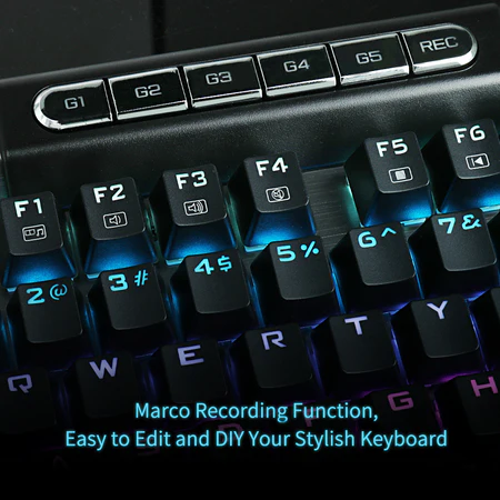 در زمینه عملکرد، این کیبورد به پنج کلید ماکرو قابل برنامهریزی (G1 تا G5) مجهز شده که به شما این امکان را میدهد تا دستورات پیچیده را تنها با فشردن یک کلید اجرا کنید—و همه اینها بدون نیاز به هیچ نرمافزاری اضافه انجام میگیرد. این ویژگی بهخصوص برای بازیهایی با نیاز به حرکات سریع و دقیق بسیار حیاتی است.