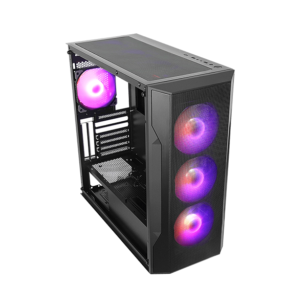 سیستم خنککننده: دارای 4 فن نصبشده 120 میلیمتری با نورپردازی ARGB؛ سه فن در پنل جلویی و یک فن در پشت کیس. همچنین امکان نصب حداکثر 7 فن برای بهبود جریان هوا و پشتیبانی از خنککنندههای مایع با ابعاد مختلف در قسمتهای جلو، بالا و پشت کیس وجود دارد.