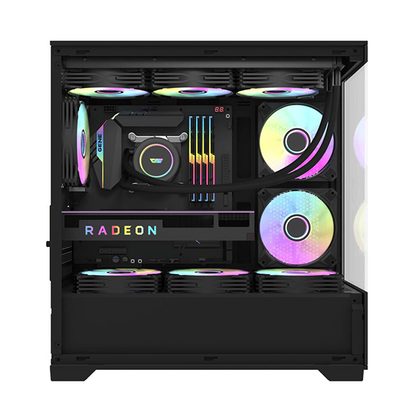 ✅ این کیس بهصورت پیشفرض با ۳ عدد فن ARGB نصبشده عرضه میشود و قابلیت نصب حداکثر ۹ فن 120 میلیمتری (یا ترکیبی از 6×120 + 2×140) را دارد. همین ویژگی خنککنندگی عالی را حتی در سیستمهای سنگین گیمینگ تضمین میکند.