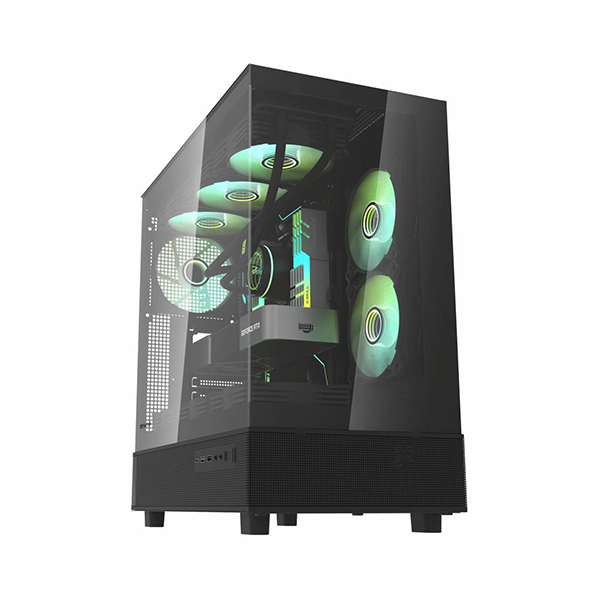 ✅ پنل جلویی این کیس مجهز به درگاههای کاربردی شامل USB 2.0، USB 3.0 و همچنین درگاه Type-C است که امکان اتصال سریع و راحت به انواع تجهیزات مدرن را فراهم میسازد. همچنین ورودی میکروفون و خروجی هدفون برای کاربران حرفهای، استریمرها و گیمرها در دسترس است. توجه داشته باشید که کنترلر ARGB داخلی برای نورپردازی فنها در این مدل وجود ندارد و باید به مادربرد یا کنترلر جداگانه متصل شود.