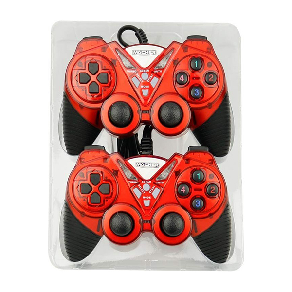 گیم پد با سیم Macher مدل MR62 بسته ۲ عددی، انتخابی مطمئن برای گیمرهایی است که به دنبال کنترلری کامل با قابلیت شوک، دکمههای زیاد و طراحی راحت برای تجربه بازیهای دو نفره با هیجان و دقت بالا هستند.
